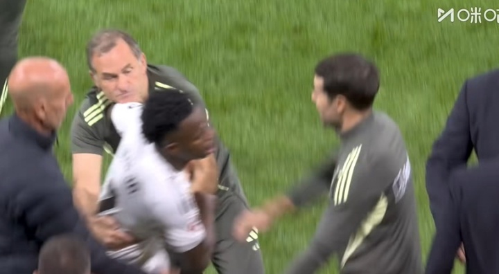 10月27日讯 国度德比赛后爆发第二次梗阻,两队混战!维尼修斯冲亚马尔融会作念“闭嘴”手势,思动粗职责主说念主员死命拉住!
