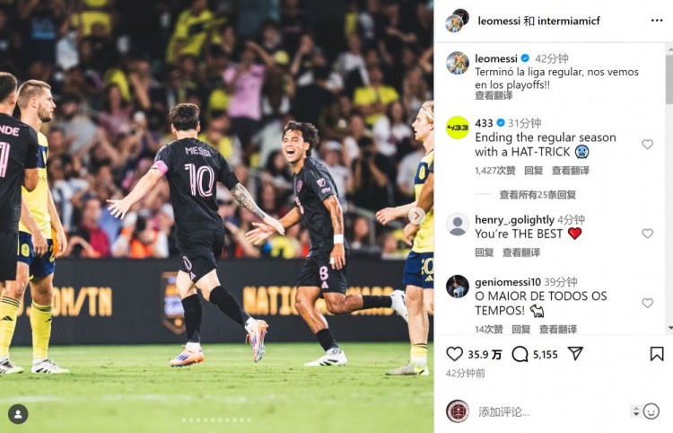 10月19日讯 好意思职联比赛,梅西3射1传,迈阿密海外客场5-2打败纳什维尔,老例赛第三名收官。