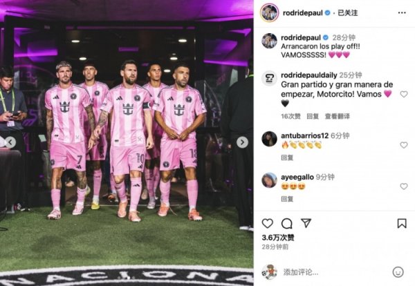 10月25日讯 好意思职联季后赛1/8决赛,迈阿密海外主场3比1打败纳什维尔。赛前,德保罗更新社媒庆祝球队得手。 德保罗社媒写谈:季后赛开战啦!!加油!!! 🩷🩷🩷 好意思职联季后赛首轮为BO3赛制,下场迈阿密海外将客战纳什维尔,取胜即晋级,比赛将于11月2日7:30打响。......查看更多
