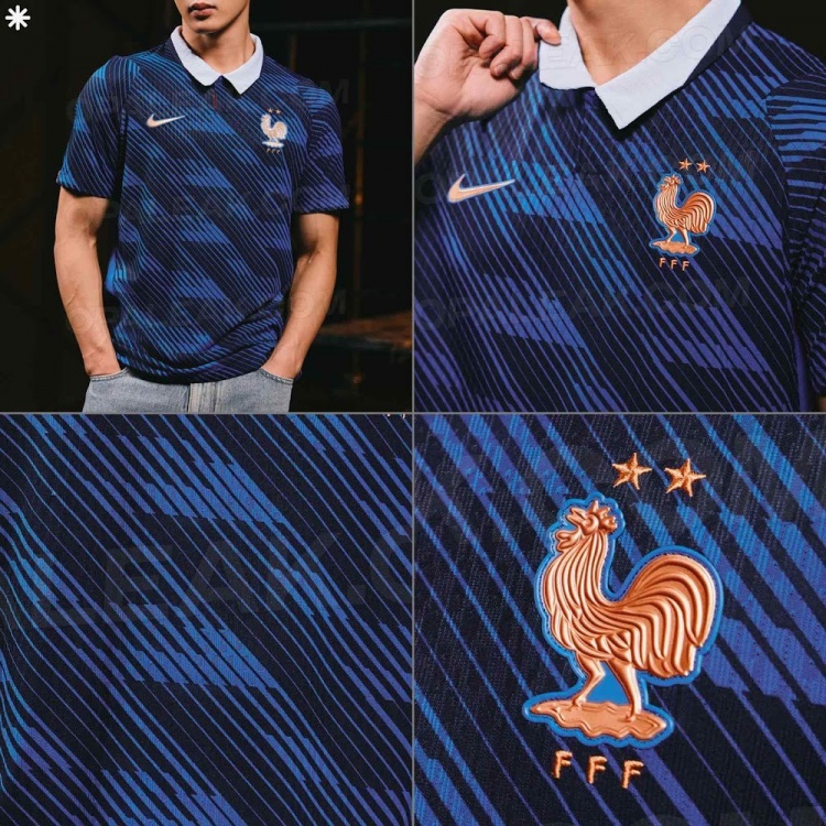 法国寰宇杯主场球衣谍照:配色灵感源于开脱女神像,带Polo领