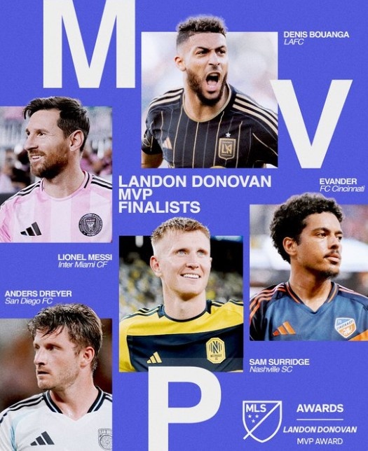 好意思职联公布了2025年年度最好球员候选名单,梅西领衔,博安加在列。