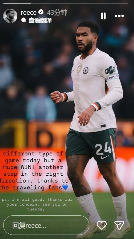 里斯·詹姆斯社媒报吉利:我一切王人好,感谢天下的关怀,周二见