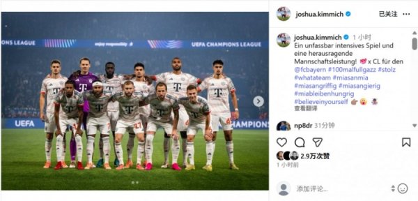 百场里程碑!基米希社媒晒合照:球队在一场热烈的比赛中发挥好意思满