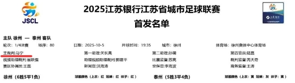 10月05日讯当天“苏超”迎来第二场淘汰赛,老例赛第3徐州队vs老例赛第6泰州队。海外级裁判马宁担任本场比赛的主裁判。