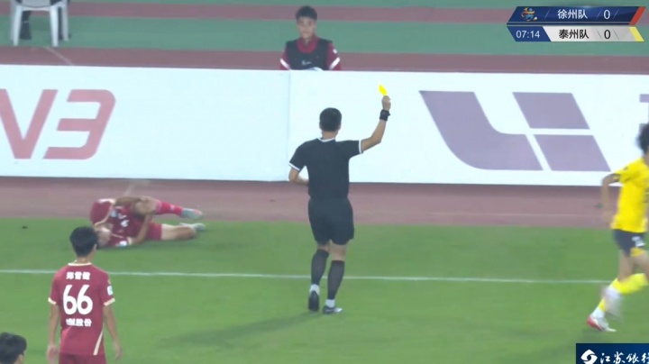 比赛进行到第8分钟,马宁就向犯规的泰州队队员出示了一张黄牌。