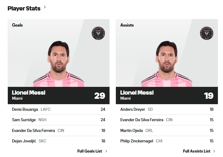 双双霸榜👑 38岁梅西通例赛28场29球19助,获通例赛金靴+助攻王