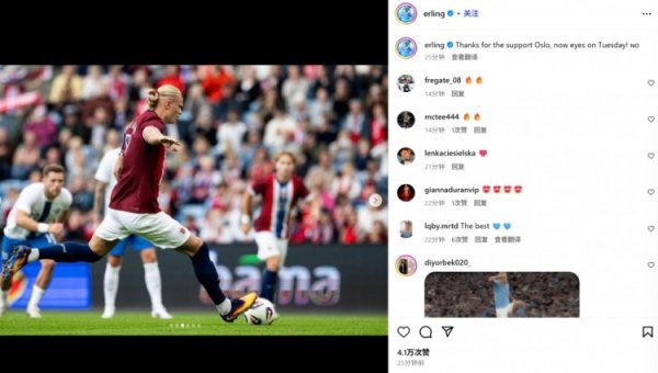 友谊赛点射制胜!哈兰德社媒庆祝:感谢主场复旧,当今专注下一场