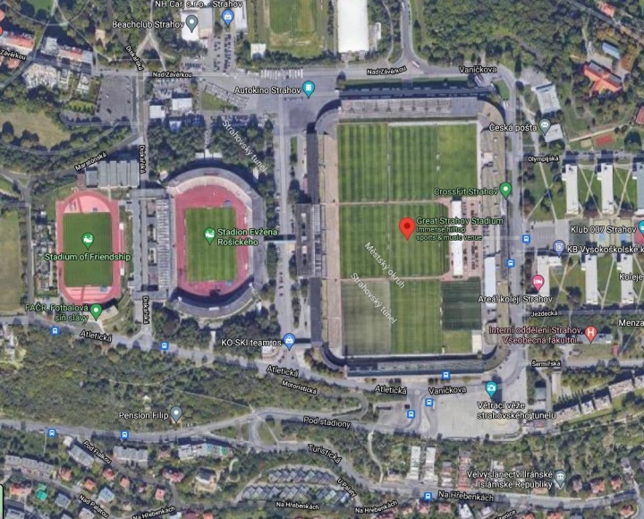 捷克斯特拉霍夫畅通场,始建于1926年,长度和宽度皆是圭臬足球场的三倍,不错容纳25万东谈主。现在该畅通场是布拉格斯巴达的锻练中心,还不错举办演唱会。