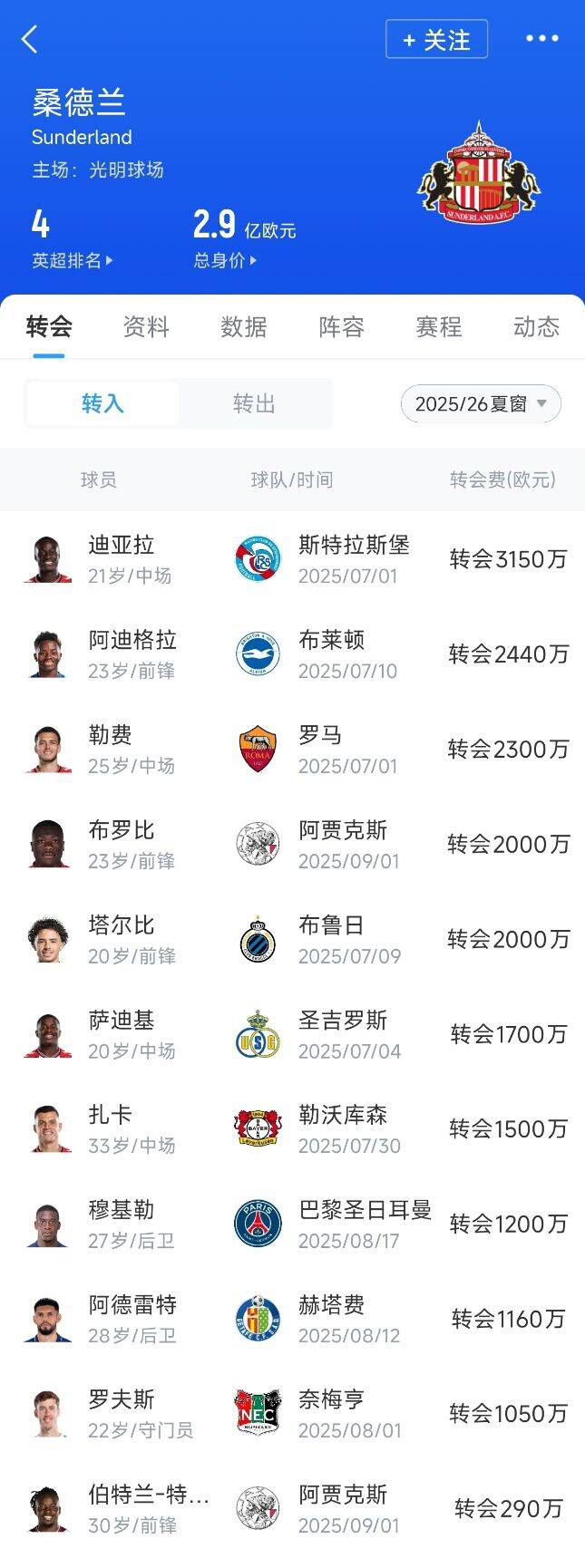 黑猫发威!桑德兰夏窗豪掷1.9亿旋乾转坤 斩蓝军平枪手名次欧战区