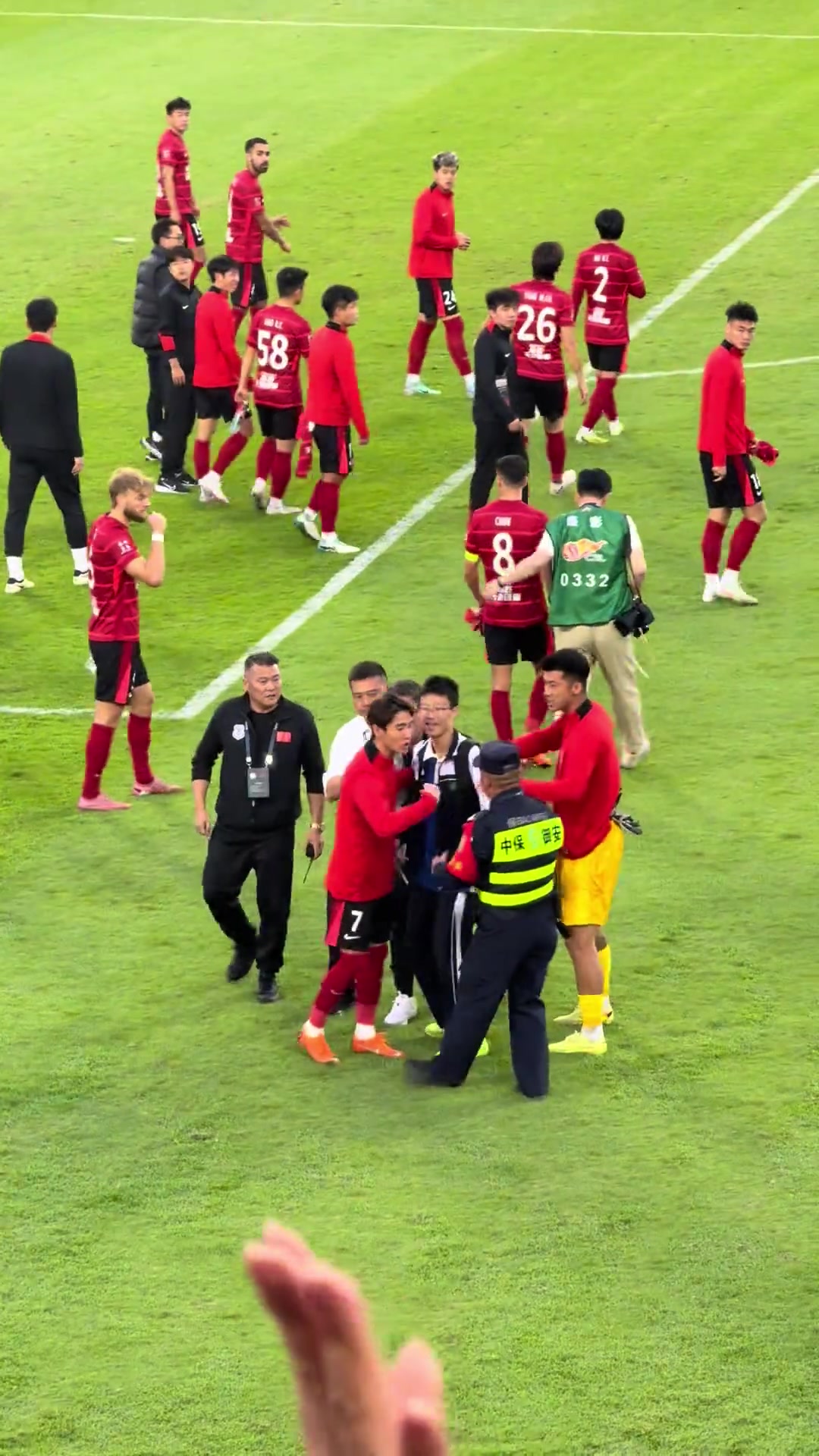 赛后谢场时候,又名小球迷冲入场内,韦世豪默示安保东说念主员稍稍放开一下,然后与前者合影一张。