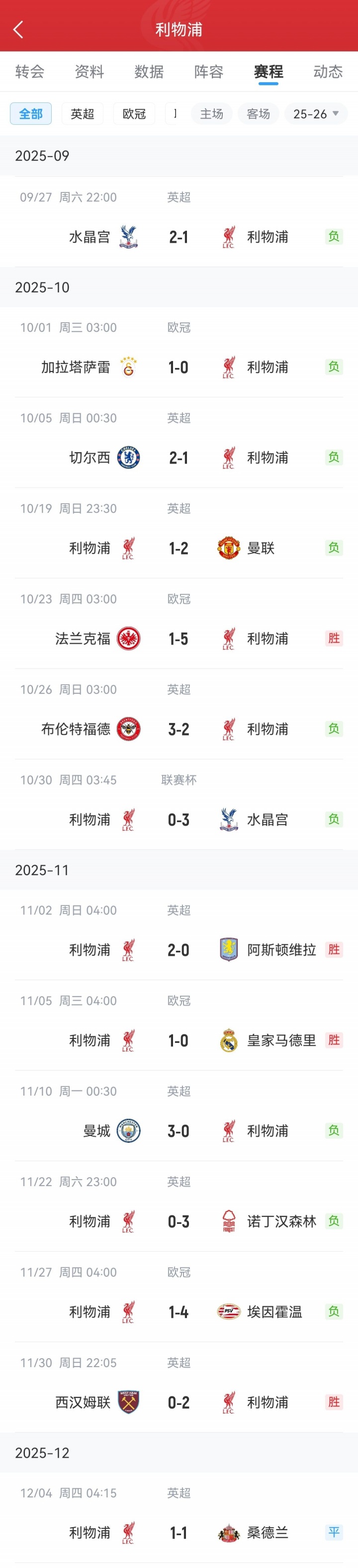 积分榜方面,利物浦现在暂时位居英超第8名,欧冠第13名。