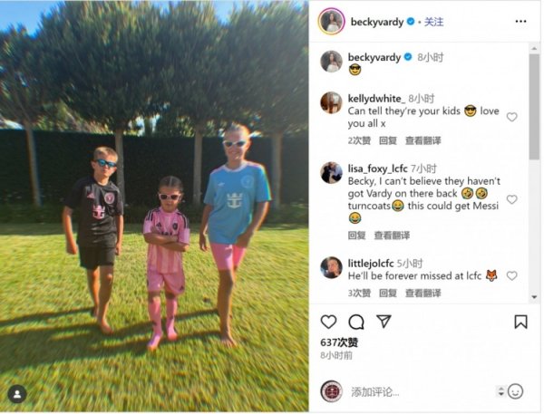 瓦尔迪配头社媒晒娃,三个孩子皆身穿迈阿密外洋球衣