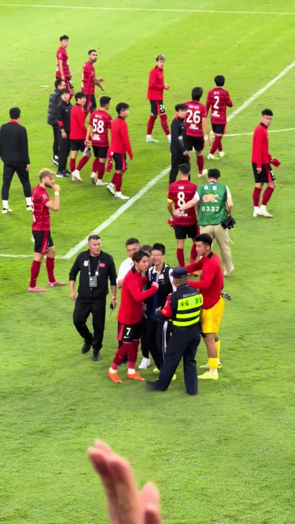11月22日讯 中超收官战,成王人蓉城客场1-1战平深圳新鹏城。 赛后谢场时候,又名小球迷冲入场内,韦世豪默示安保东说念主员稍稍放开一下,然后与前者合影一张。......查看更多